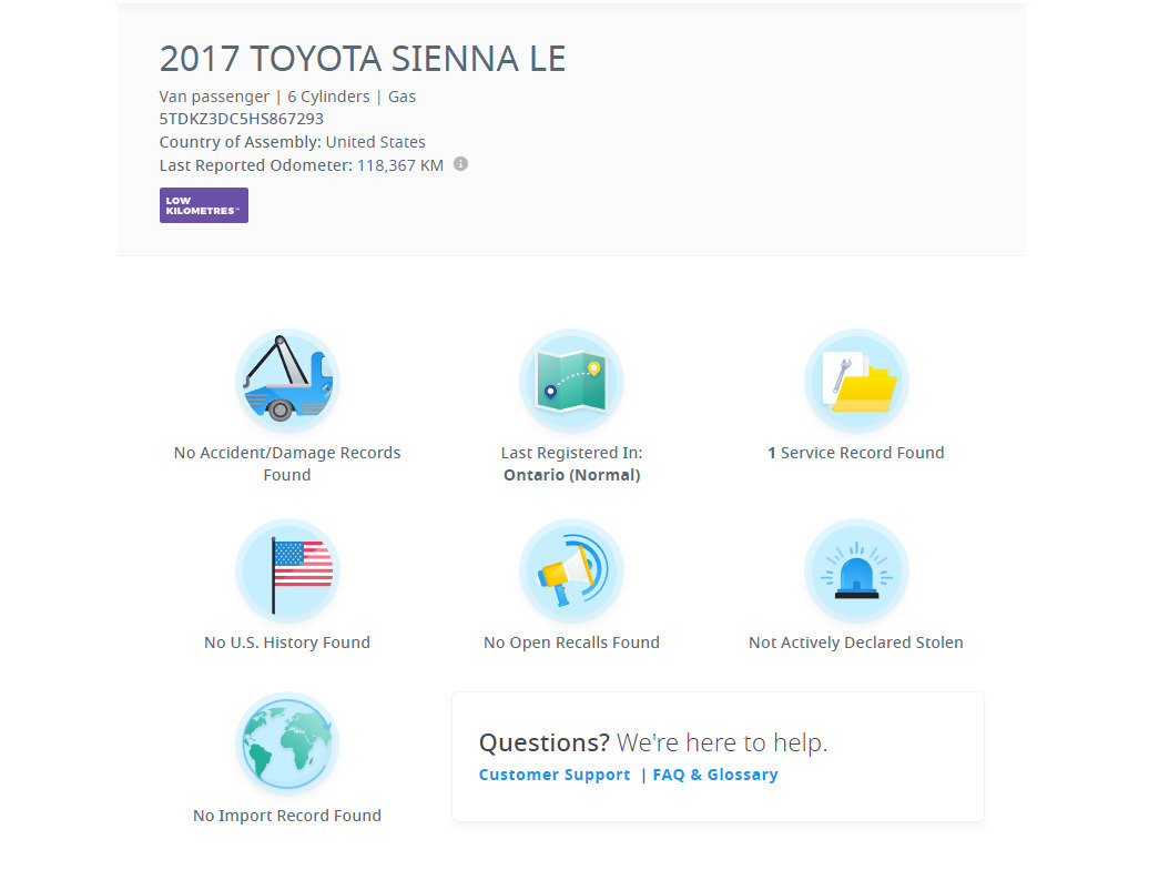Every reasonable effort is made to ensure the accuracy of the information listed above. Vehicle pricing, incentives, options (including standard equipment), and technical specifications listed is for the 2017 Toyota Sienna 5dr LE 8-Pass CleanCarfax PowerSIdeDoor BackCame may not match the exact vehicle displayed. Please confirm with a sales representative the accuracy of this information.Payment amounts presented are for illustrative purposes only and may not be available. The Estimated Finance Payment amount calculated is based on the variables entered, the price of the vehicle you entered, the term you select, the down payment you enter, the Annual Percentage Rate (APR) you select, and any net trade-in amount. The payment estimate displayed does not include taxes, title, license and/or registration fees. Payment amount is for illustrative purposes only. Actual prices may vary by Dealer. Please contact dealer for actual rates and more details.